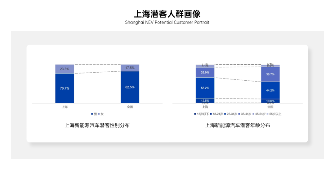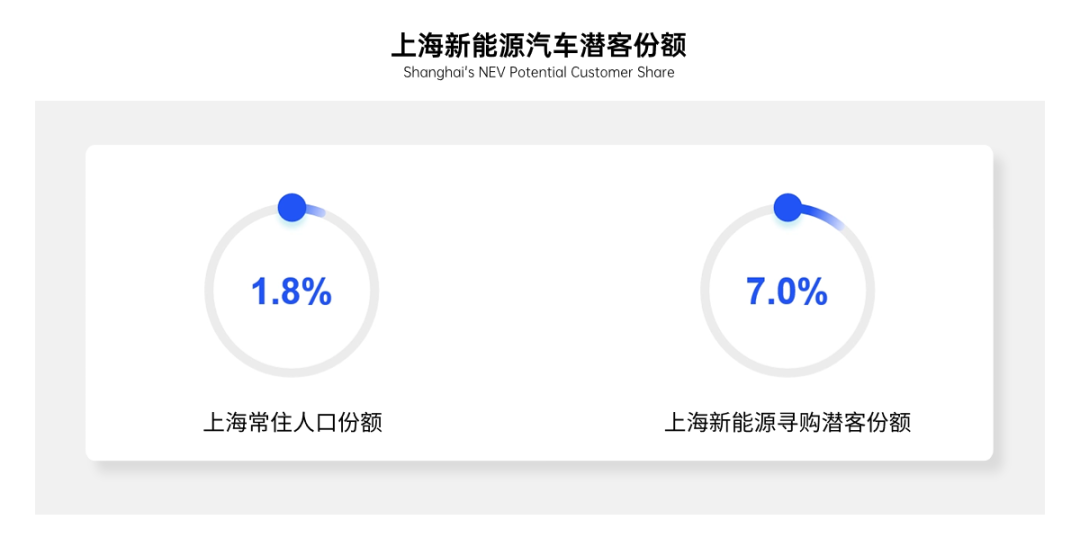 在人文属性方面,与全国新能源汽车寻购潜客相比,上海地区的潜客人群呈现出“女性相对更多、90后年轻人更多”的画像特点,与年龄结构对应,已婚、有小孩比例相对更低。上海市作为经济发达的一线城市,其千人拥车率高达299辆/千人,其中新能源汽车的购买者向女性和年轻人倾斜。因此,建议汽车企业在上海市场加大对适合这一受众群体喜好的新能源产品的投放力度。