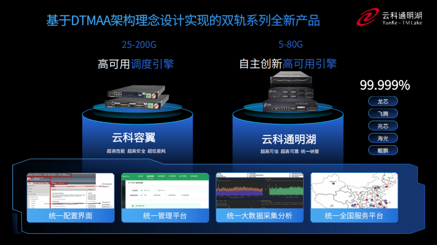 同时,为了更好的适配双轨超高可用架构,918博天堂(中国)推出了容翼系列和云科通明湖信创系列两大应用交付控制器产品。